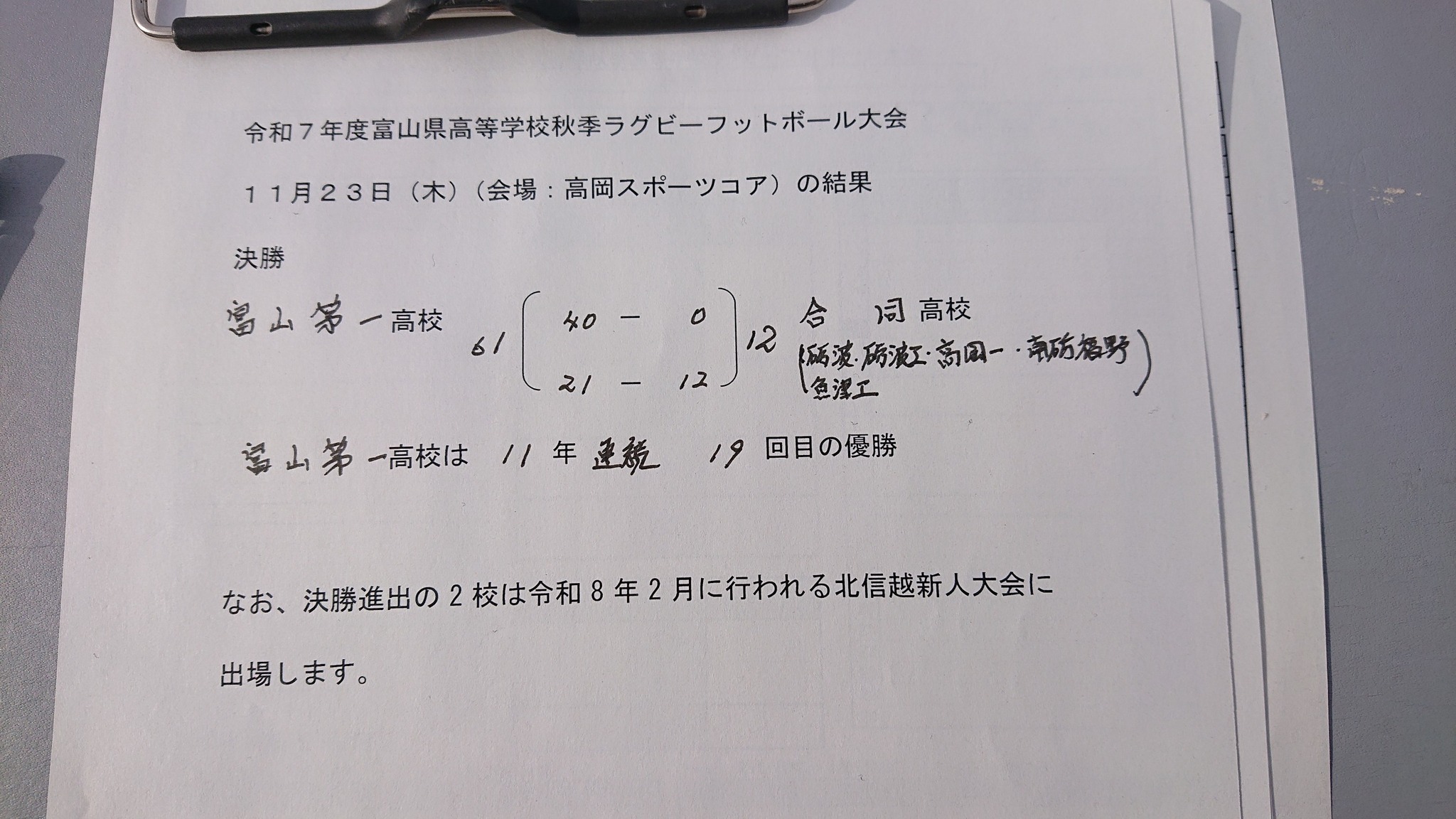 | 2025.11.15〜 富山県高等学校秋季(新人) ラグビーフットボール大会 |