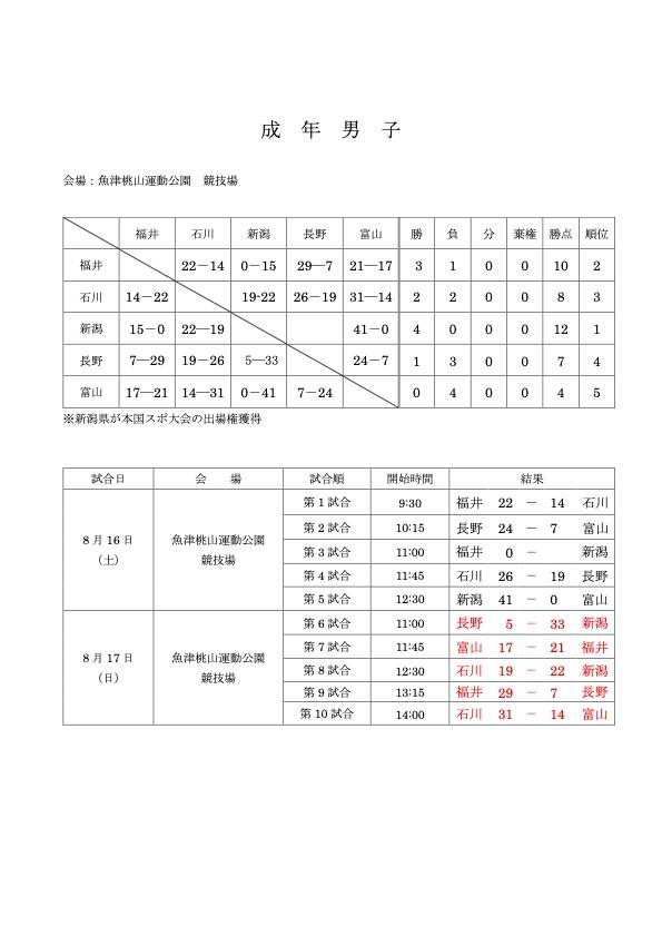 | 2025.8.16〜 第46回 北信越国民スポーツ大会 ラグビーフットボール競技大会 |