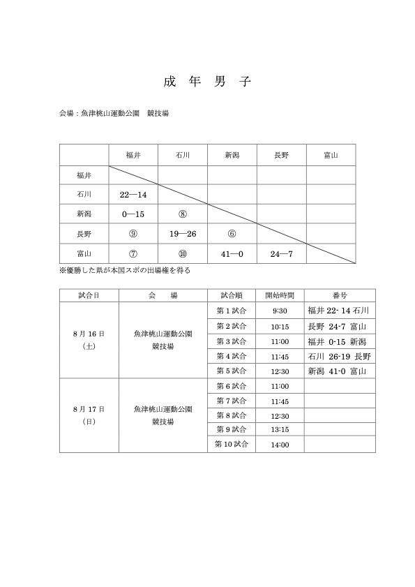 | 2025.8.16〜 第46回 北信越国民スポーツ大会 ラグビーフットボール競技大会 |